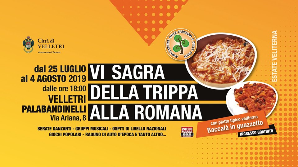 Eccoci pronti nuovamente per la VI Sagra della Trippa alla Romana e non solo. Lo scrivono su facebook gli organizzatori di uno degli eventi più attesi del cartellone estivo laziale.