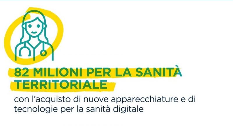 • 82 milioni per un grande piano di rafforzamento della sanità territoriale, con l’acquisto di tecnologie sanitarie (acceleratori lineari, angiografi, tac, risonanze magnetiche, mammografi), e della sanità digitale;